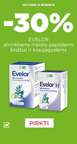 Pasiūlymas galioja 2026 04 01 - 04 30 www.eurovaistine.lt klubo nariams ir fizinėse vaistinėse su EUROVAISTINĖS lojalumo kortele. Taikoma prekėms pagal administracijos patvirtintą sąrašą nuo įprastinės kainos, kurios internete gali skirtis nuo prekių kainų fizinėse vaistinėse. Prekių skaičius ribotas. Maisto papildai. Įmonė pasilieka teisę bet kada keisti akcijų sąlygas.