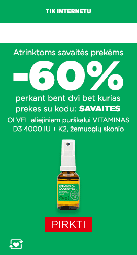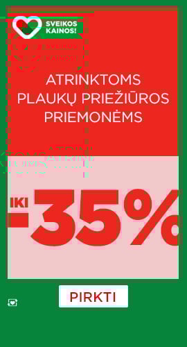 Pasiūlymas galioja tik 2026 03 09 eurovaistine.lt klubo nariams perkant prekių bent už 19 € ir krepšelyje įvedus kodą PIRMADIENIS. Taikoma prekėms pagal administracijos patvirtintą sąrašą. Nuolaida galioja nuo reguliarios kainos. Nuolaidos kodai negalioja su kitais nuolaidų kodais, nebent juose nurodyta kitaip. Prekių skaičius ribotas. Įmonė pasilieka teisę bet kada keisti akcijų sąlygas. Maisto papildai.