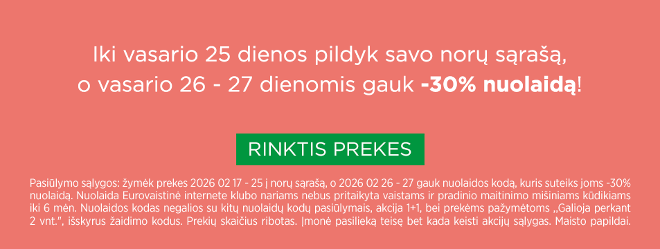 Dėk prekes į norų sąrašą ir gauk joms -30% nuolaidą!