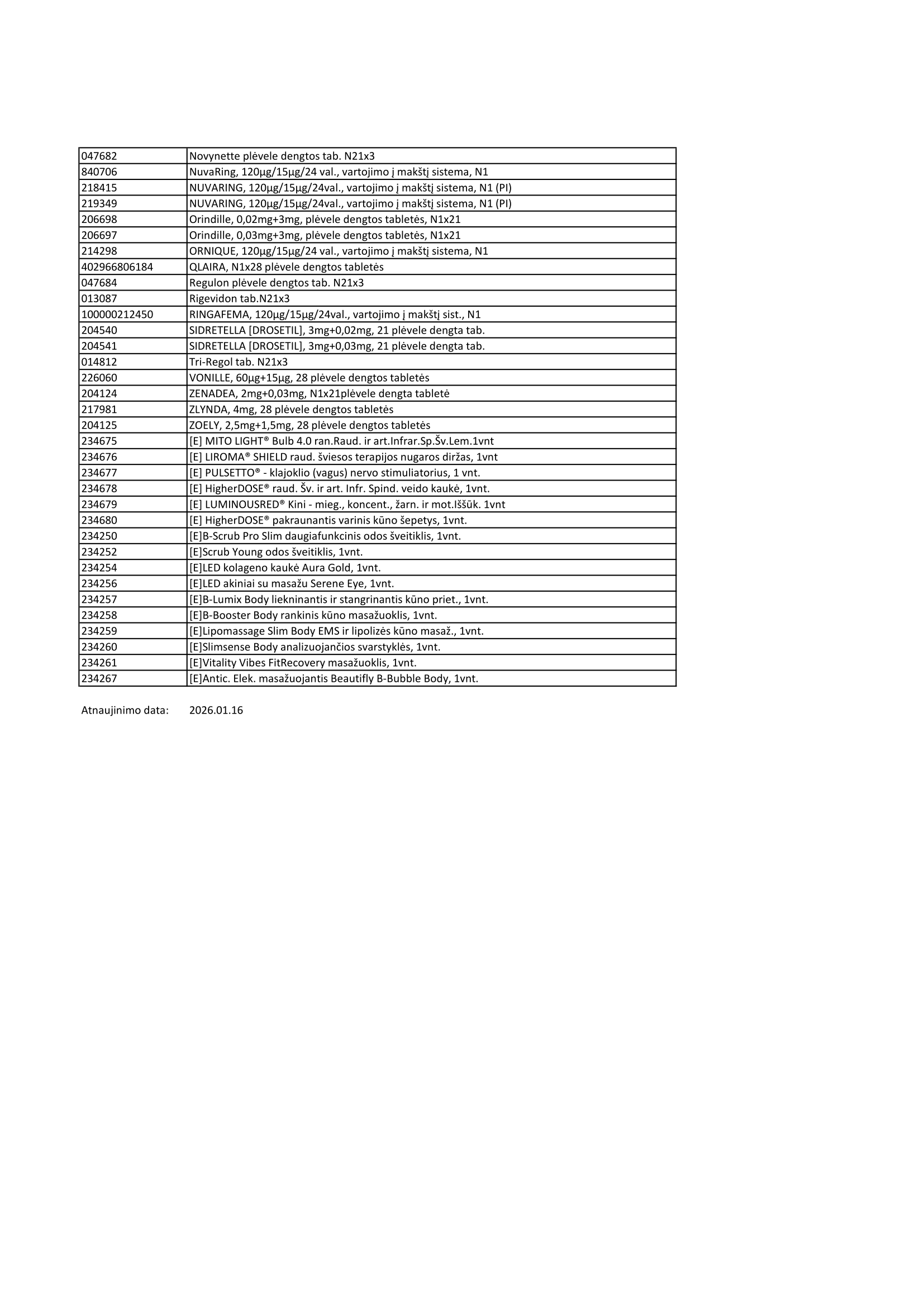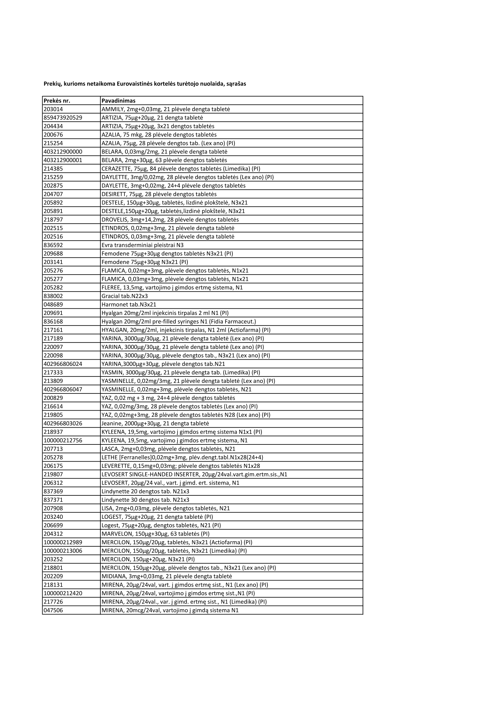 Prekių, kurioms netaikoma Eurovaistinės kortelės turėtojo nuolaida, sąrašas